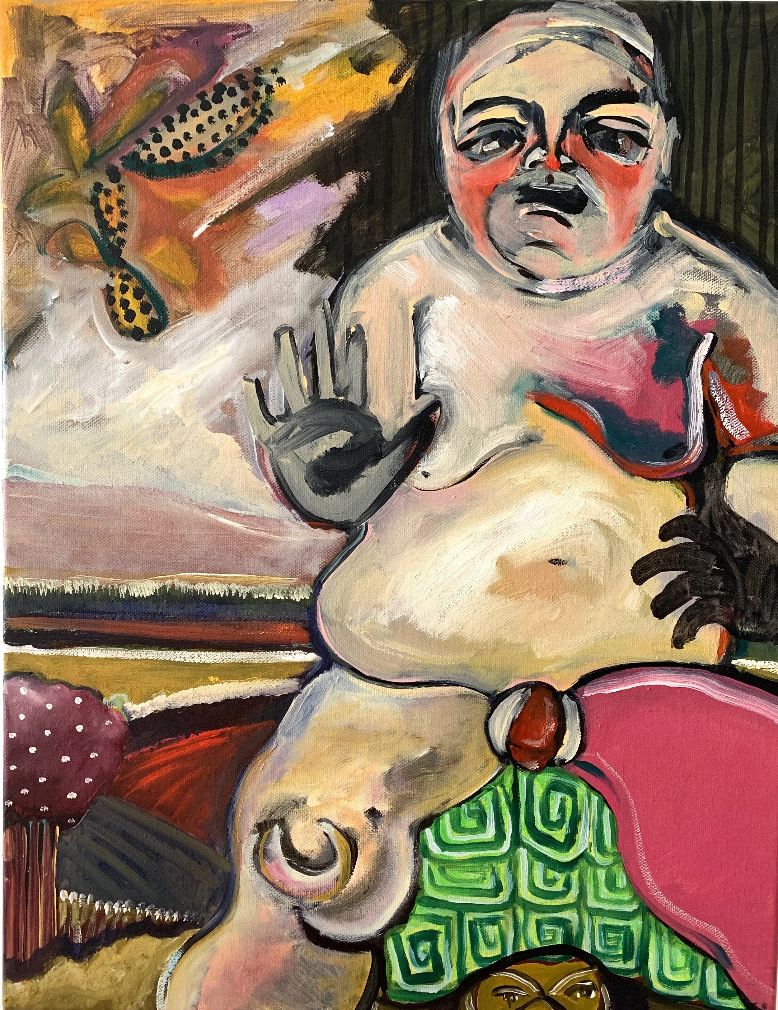 "Bacchus Riding on a Tortoise", oil on canvas, 18 x 14 inches