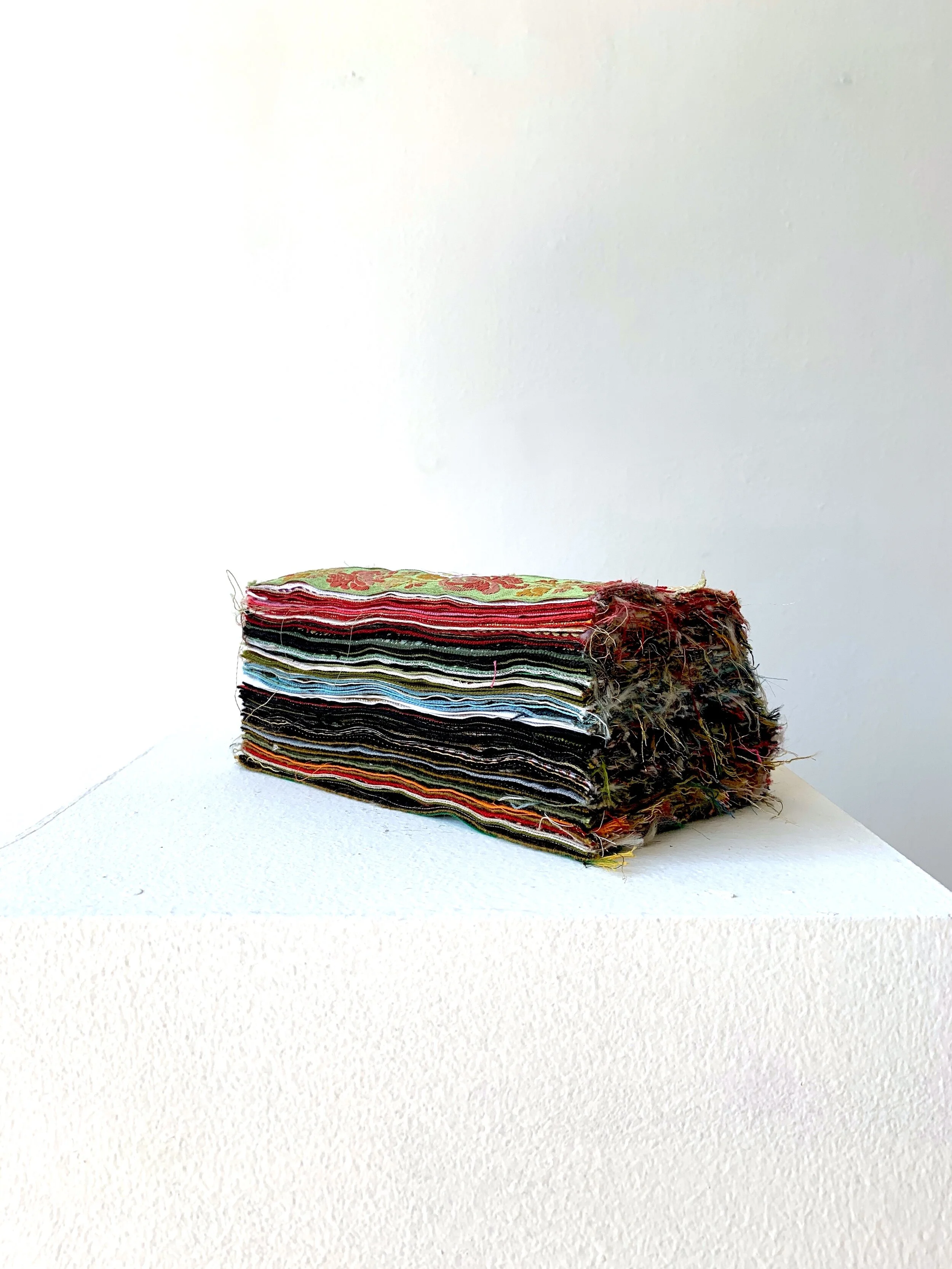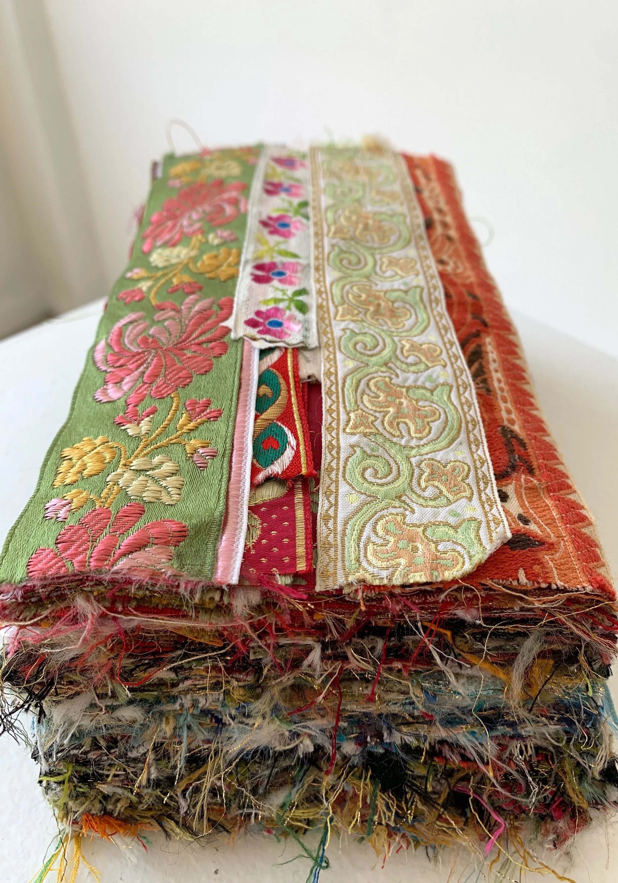 "ribbon brick", braid and fabric adhesive, 9 x 5 x 4 inches (end view)